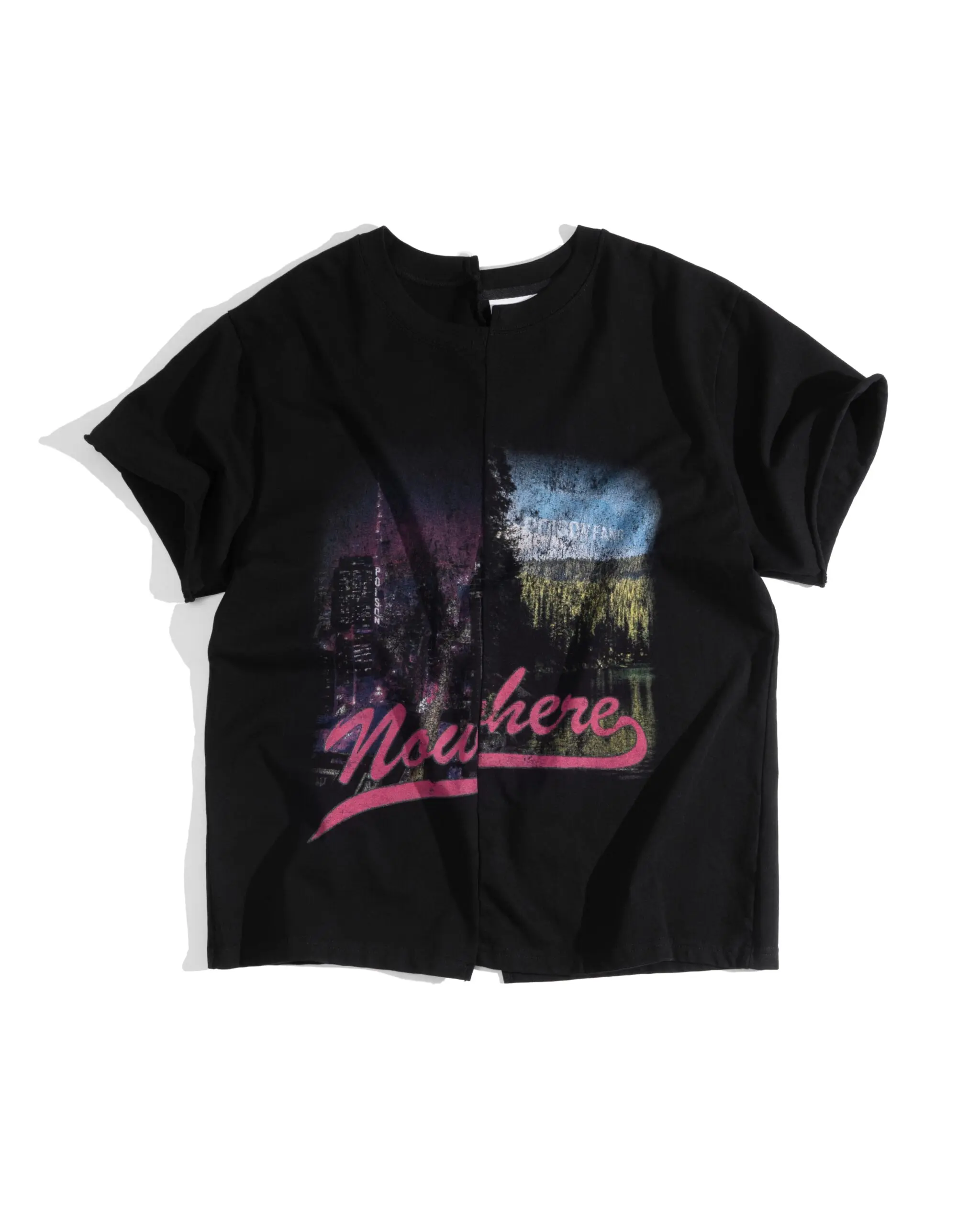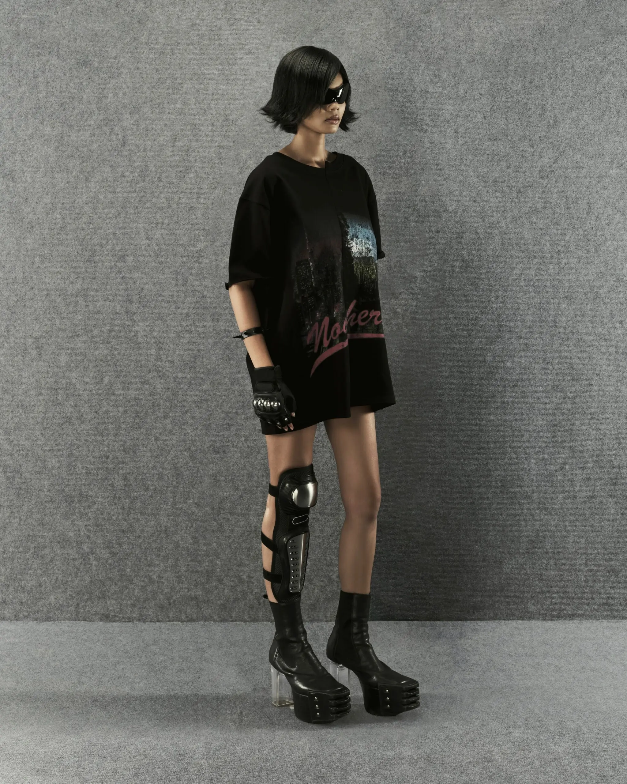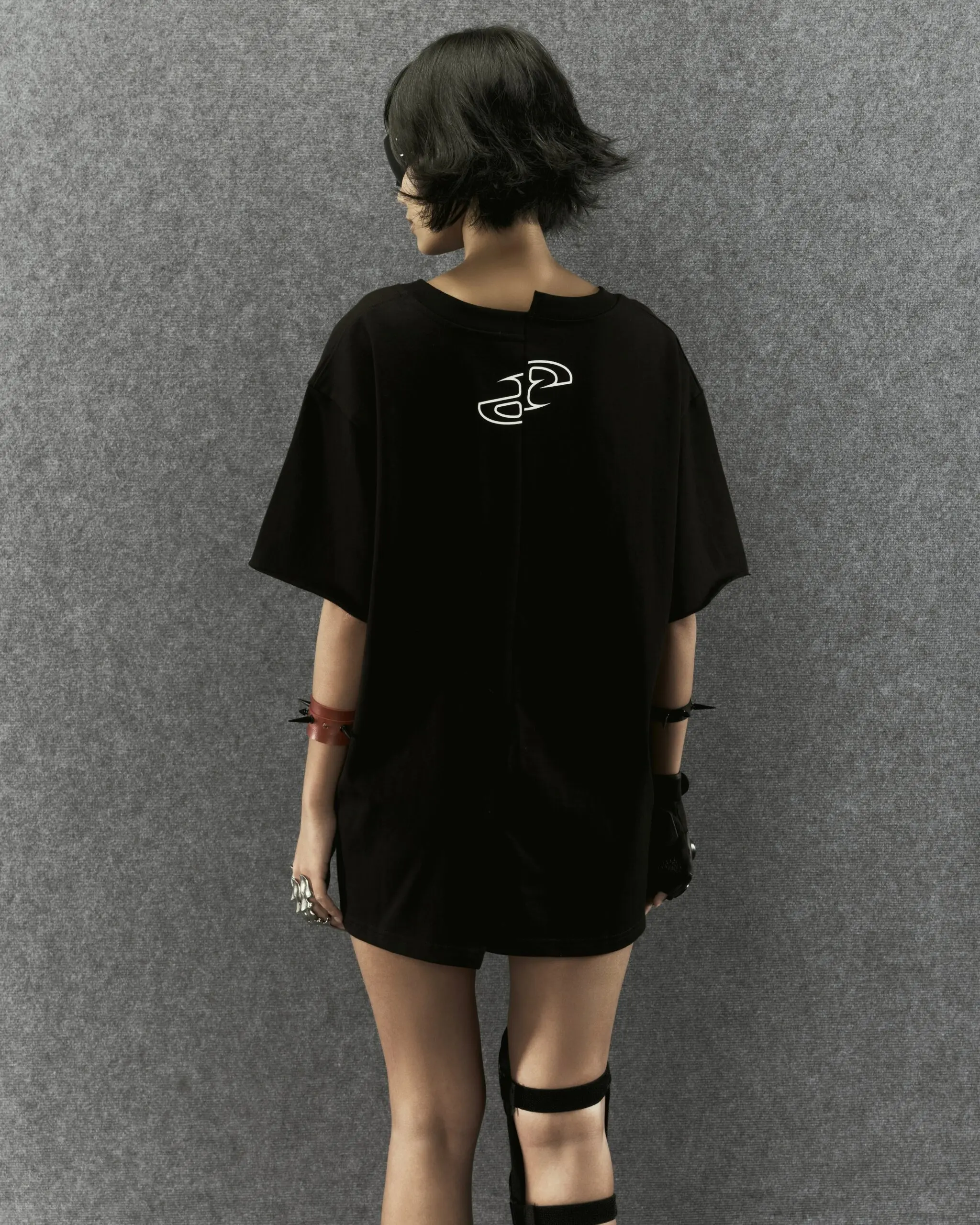 Crafted from 100% cotton, the garment is initially constructed in an oversized silhouette, then deliberately cut and reassembled using an asymmetrical technical construction, creating a bold and refined deconstructed aesthetic.