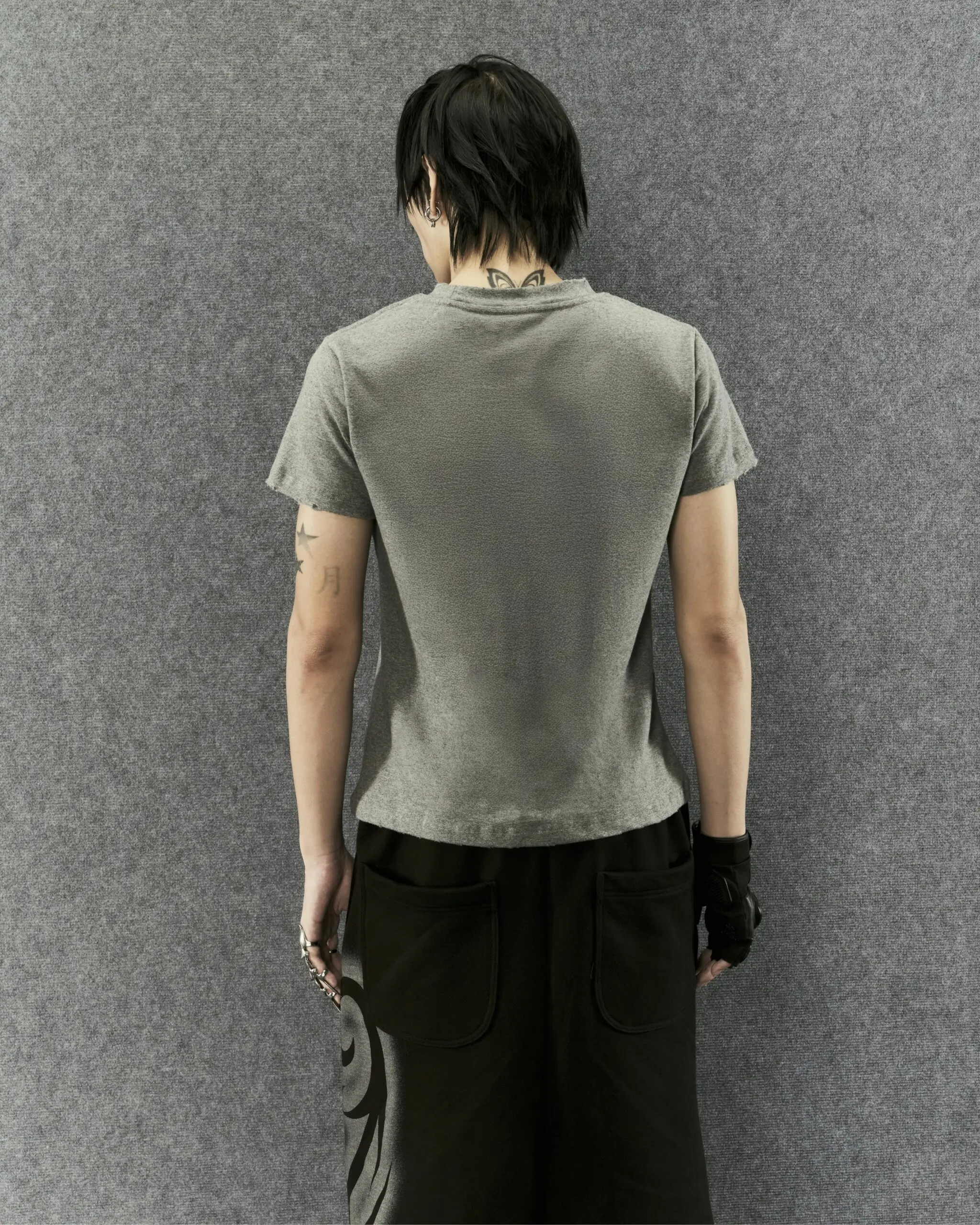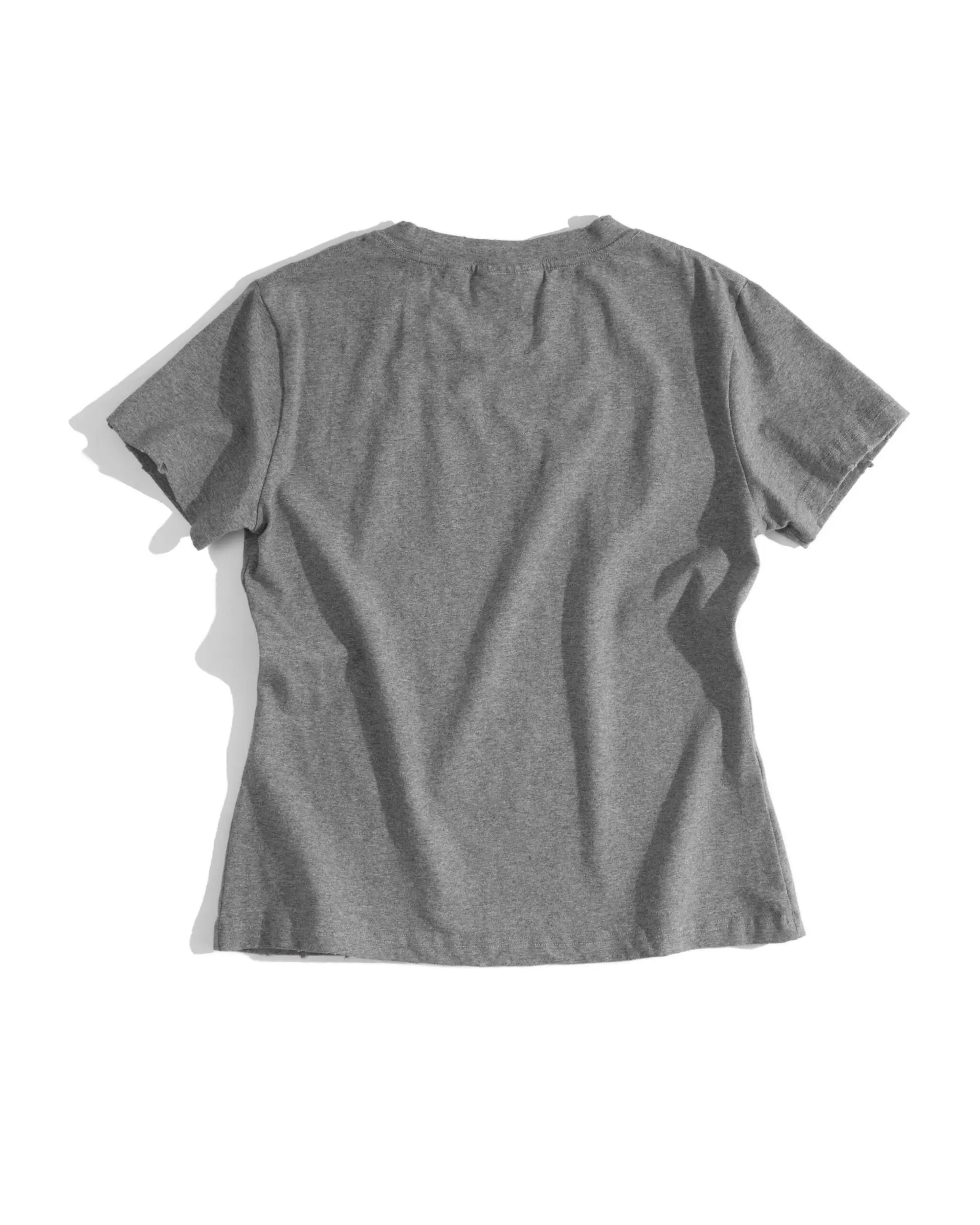 Designed in a signature baby tee silhouette, crafted from a premium blend of 95% cotton and 5% polyester to deliver subtle stretch and all-day comfort. The classic baby tee fit offers an effortless unisex wear. Hand-distressed detailing is carefully refined along the neckline and sleeves, adding a raw, artisanal edge to the minimalist form.
